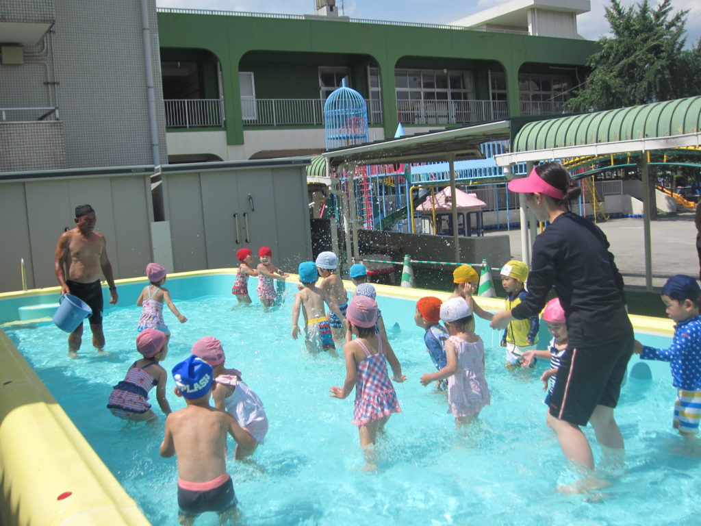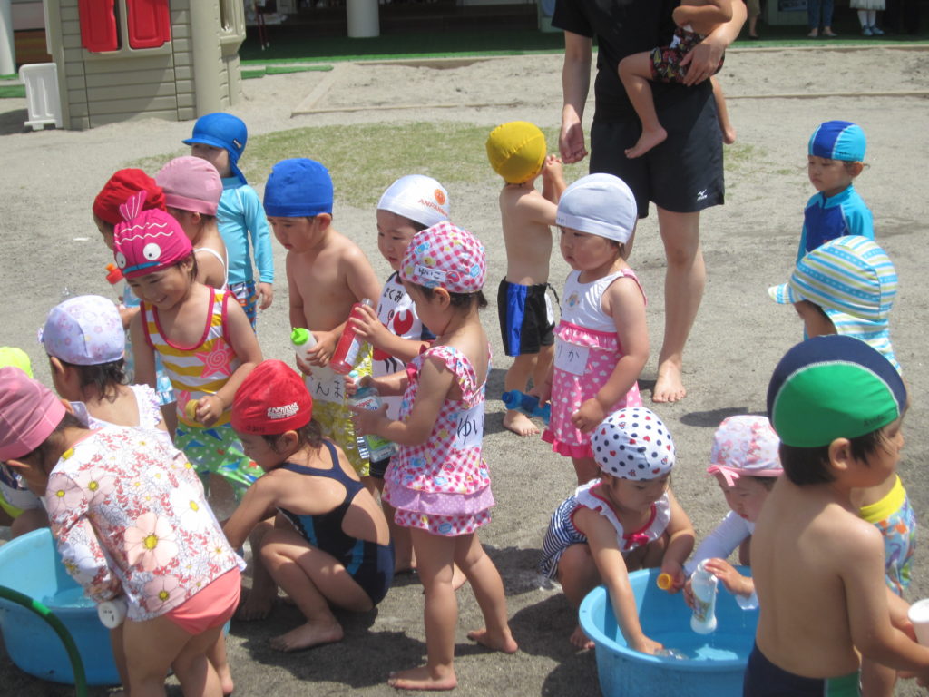 ちゅうりっぷ組さんも楽しく水遊び。気持ちいいよ