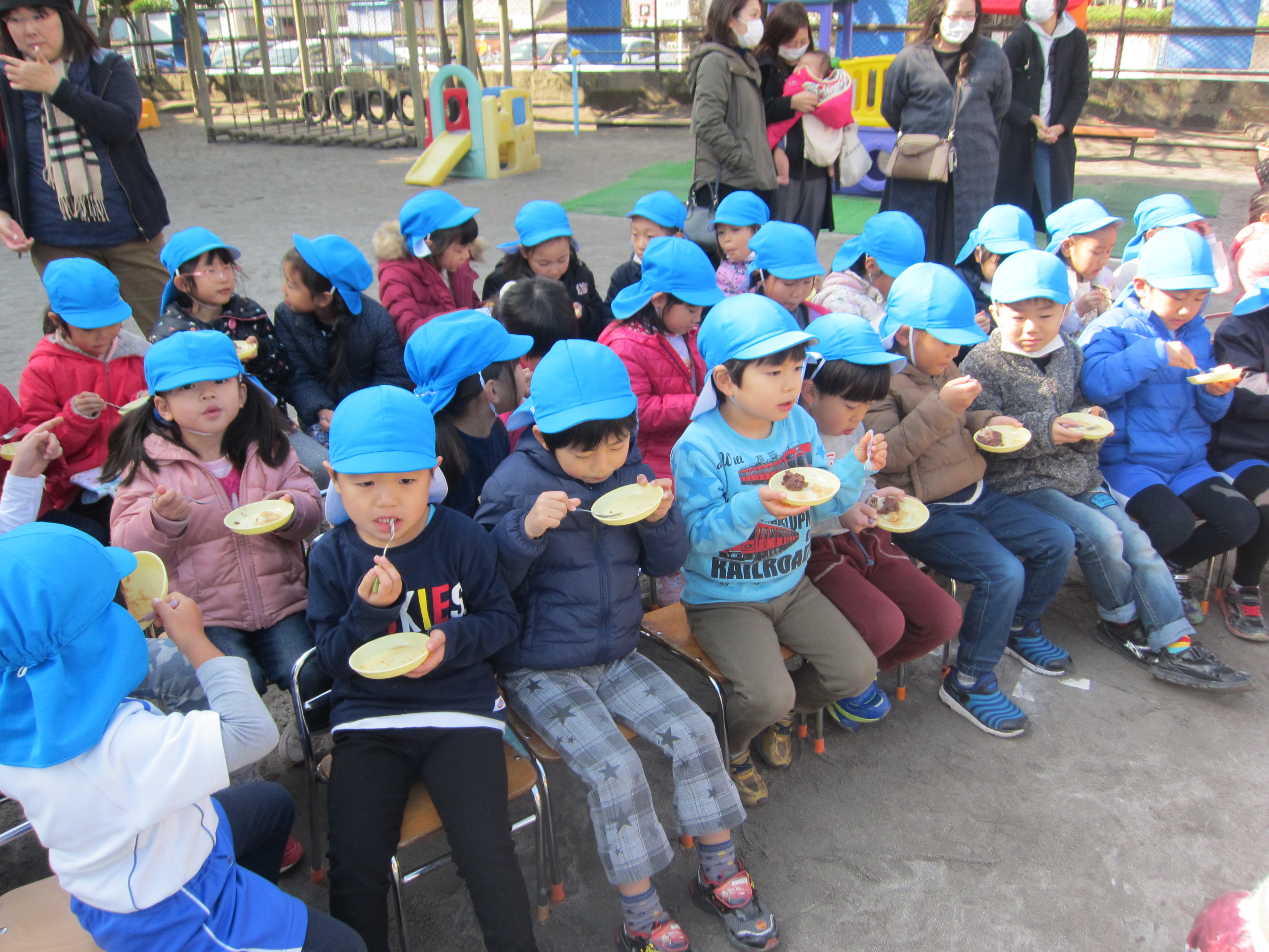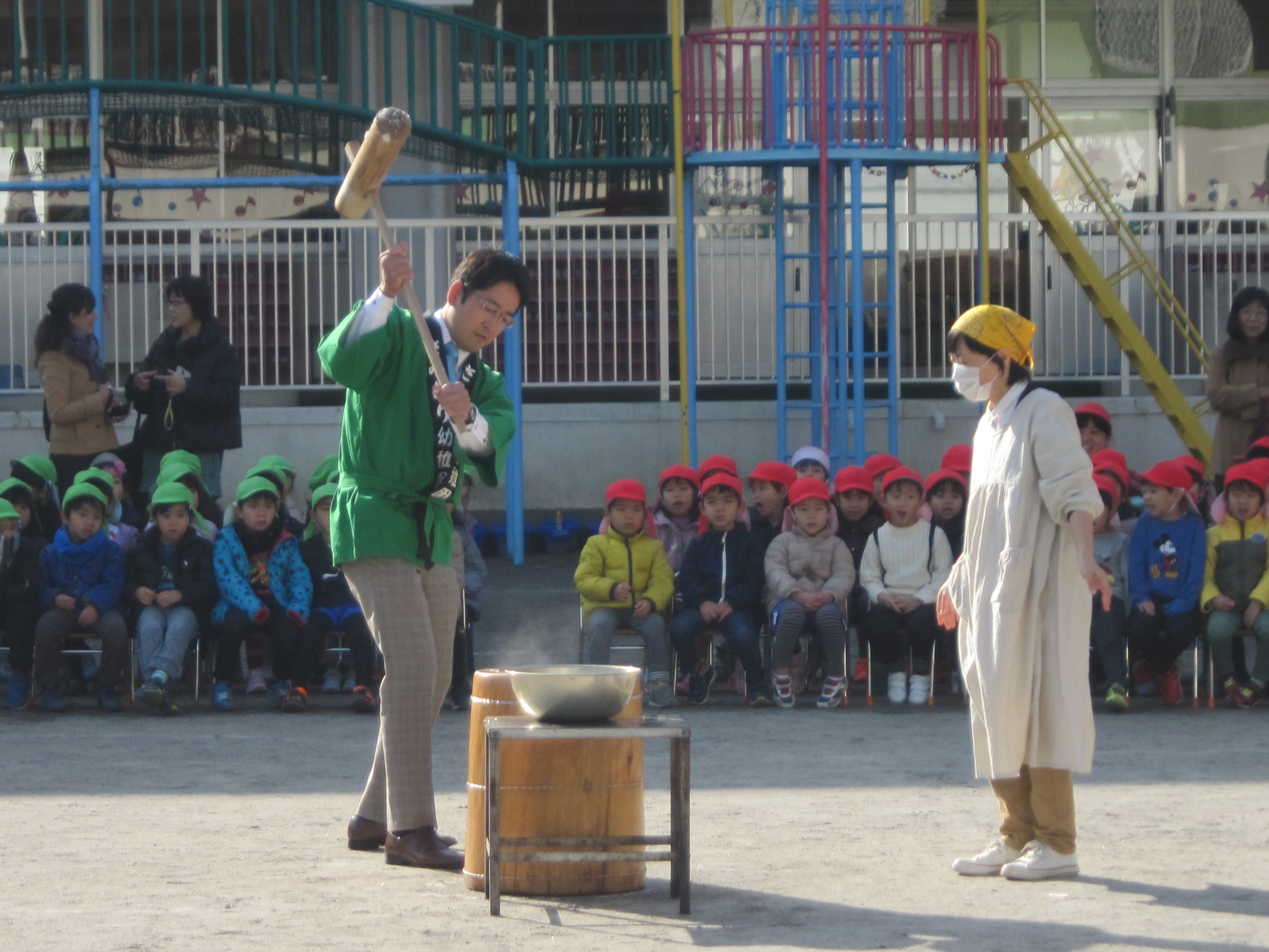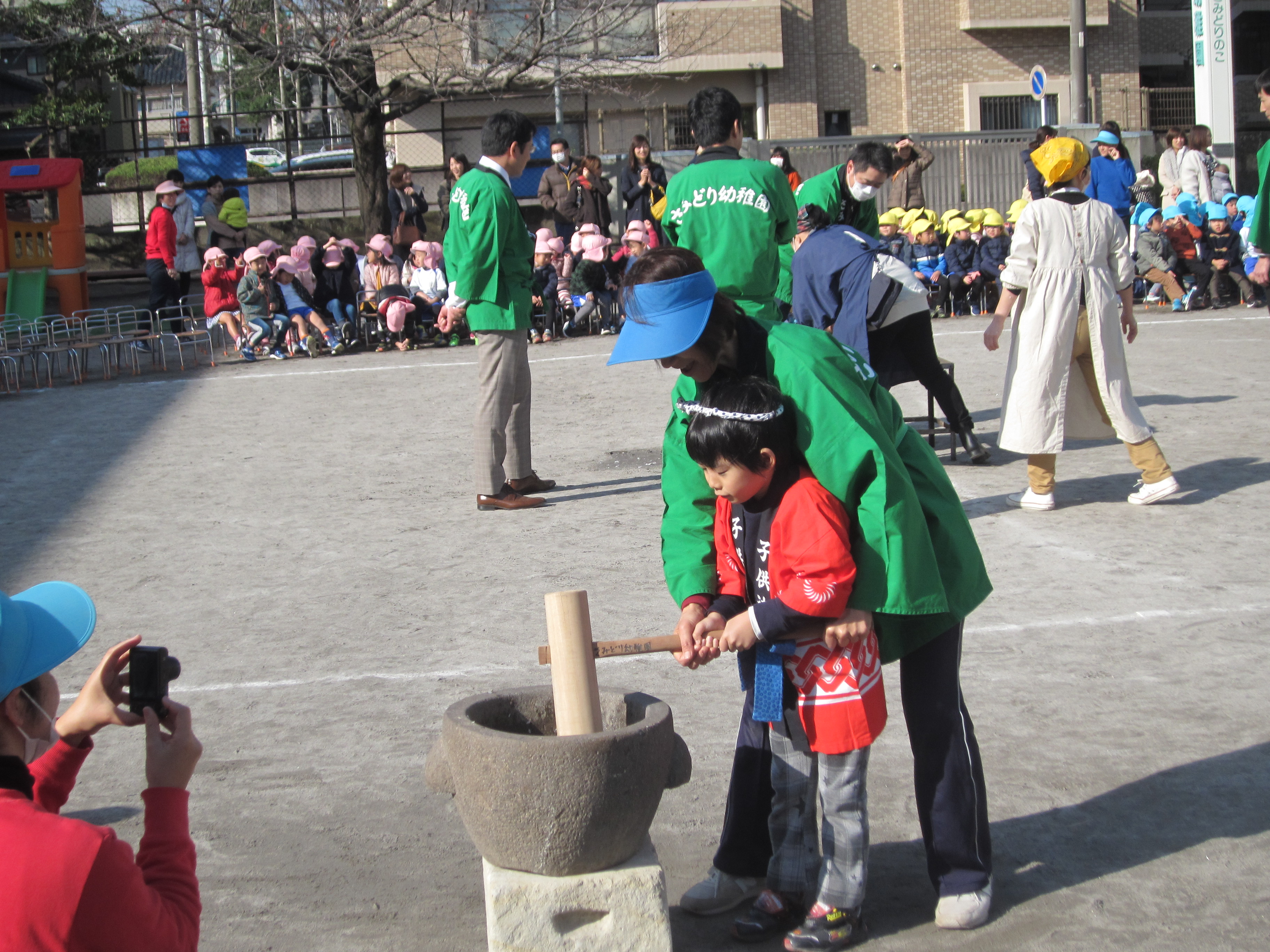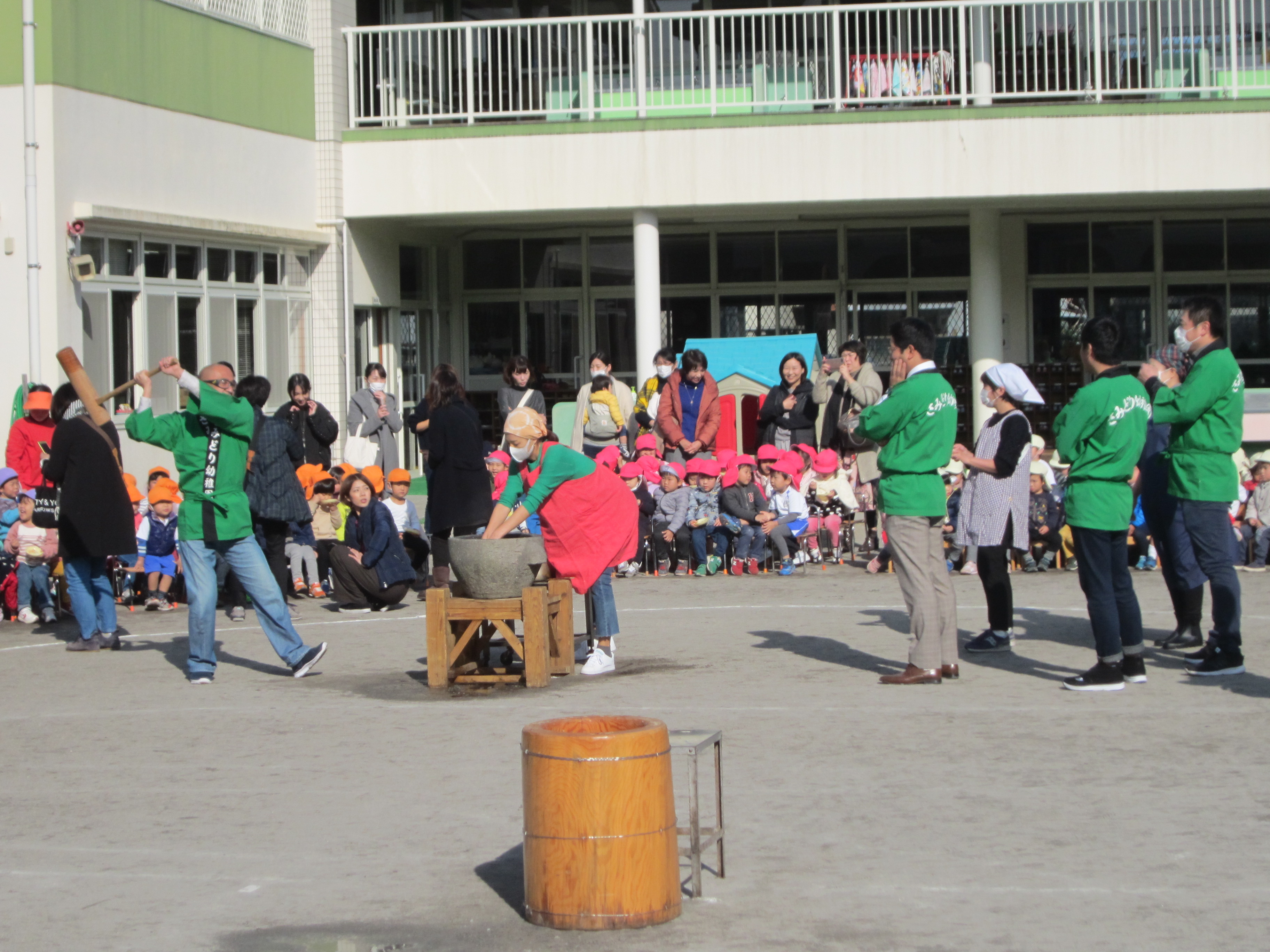 お正月を前にさみどり幼稚園の餅つき大会を行いました。たくさんのお父さん、お母さん方が協力をしてくださいました。