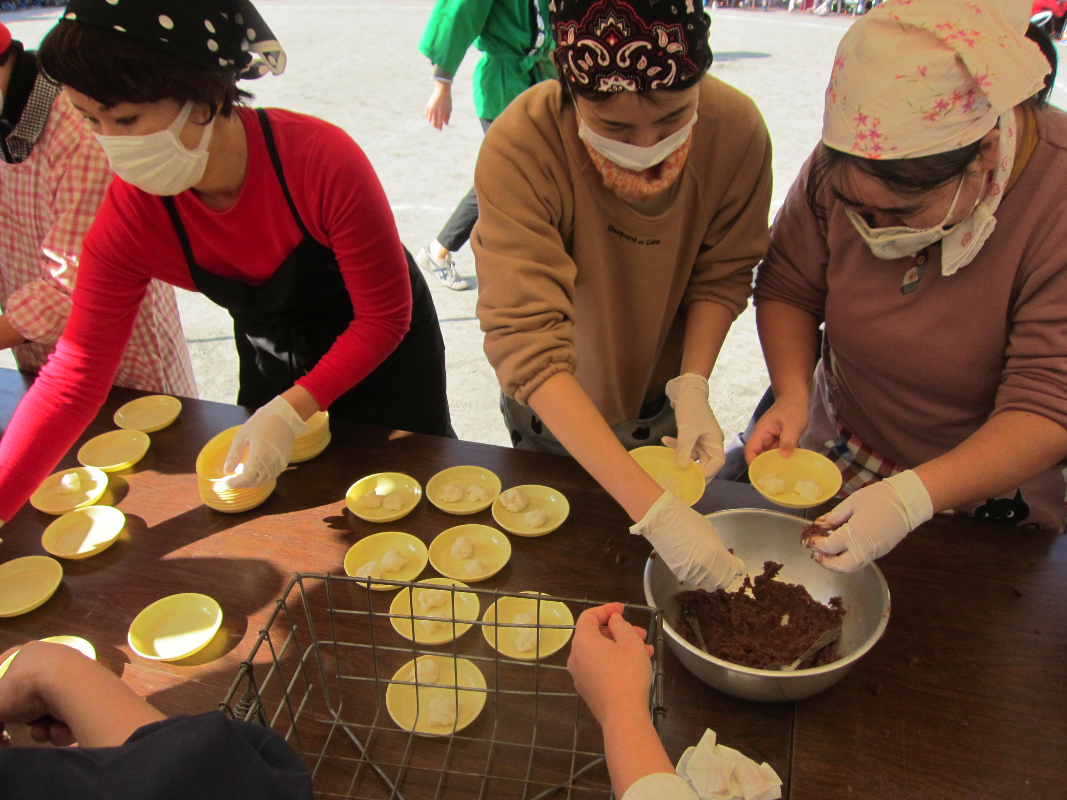 園庭に釜を作り蒸していきました。とてもいい匂いがしました。