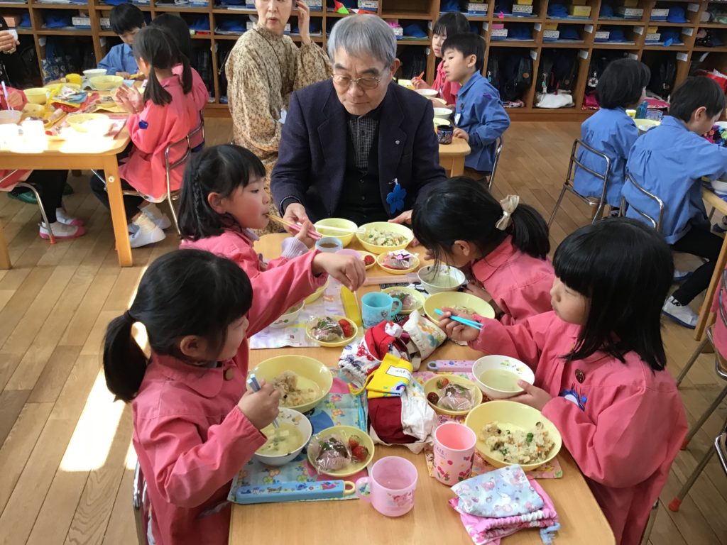 さみどり幼稚園では、毎年地域の高齢者を幼稚園にご招待して「ひな祭り交流会」を開催しています。