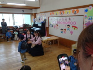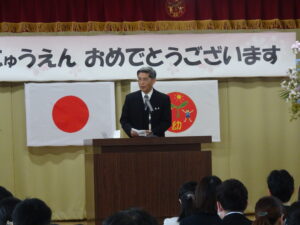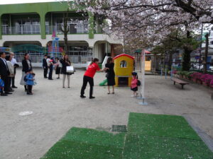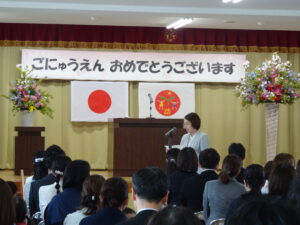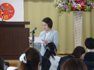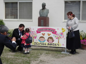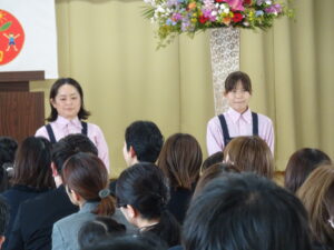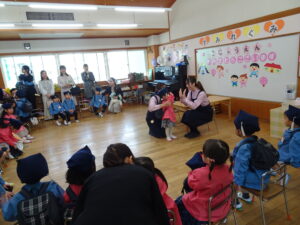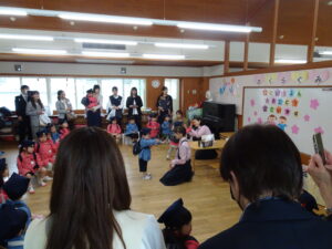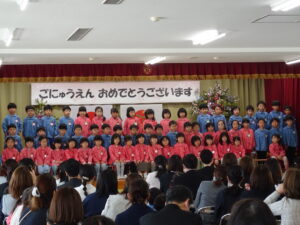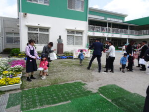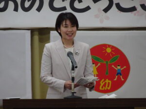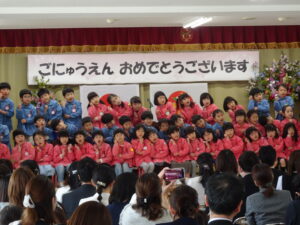 さみどり幼稚園の第79回入園式が行われました。式では園長先生やPTA 会長さんのお話を聞いたり、園長先生から記念品をいただいたりしました。最後に保護者代表の方のあいさつがあり、園歌を歌って式が終わりました。その後、年長さんたちから、「そうだったらいいのにな」「にじのむこうに」の歌のプレゼントもありました。すごく元気な歌声にびっくりしましたが、とても素敵でした。早く幼稚園に行きたいな。