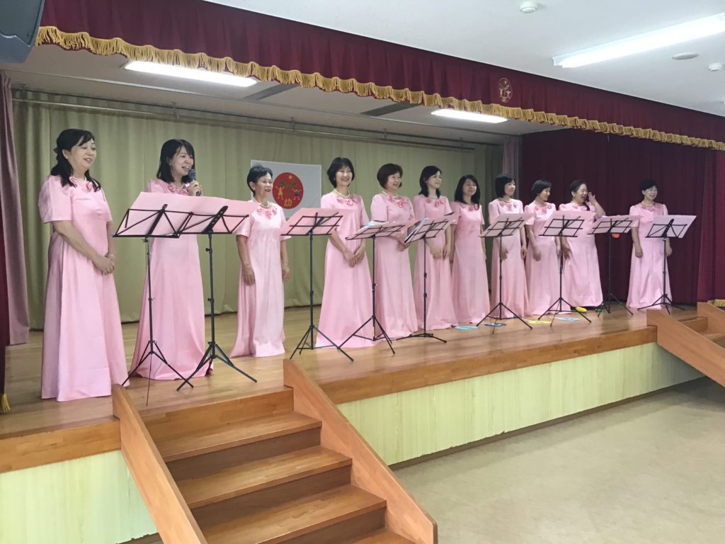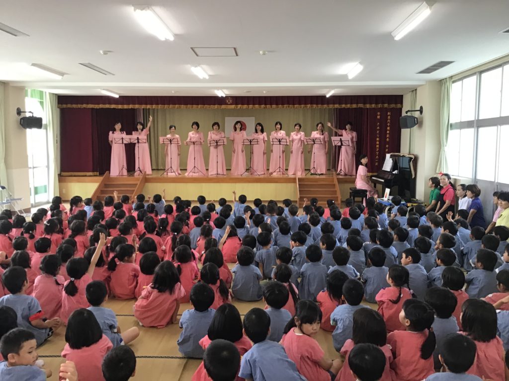 遊戯室では、コールさみどりのお母さん方が創立記念に向けての歌のプレゼントをしてくださいました。また、73年の歴史を映像で振り返り、一人ひとりがさみどり幼稚園のすばらしさを感じることができました。これからさらに発展できるように努力して行きます。