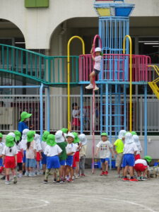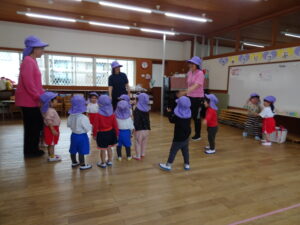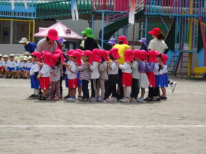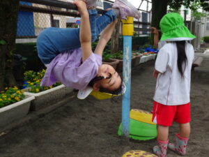 さみどり幼稚園の良いと思うところを、今年新しく来られた1年目の先生3名にお聞きしました。一人目は、長い間、保育園に勤務され、今回、幼稚園の免許を取るために教育実習に来られている先生に突然インタビューしました。「さみどり幼稚園の良いところはどんな所ですか。」先生は「さみどり幼稚園は学校だと思いました。活動Ⅰや活動Ⅲなどの自由な時間帯に、子どもたちの遊びの環境設定が入念に準備されている。子どもたちの活動がスムーズに流れるように子どもの考えを尊重して準備されている」と話されました。園長先生は、「そのために、先生方が、子どもたちが砂場で造形しやすいように耕運機で砂場をふかふかにしたり園庭に小遊具を計画的に設置したり、プレイルームには製作コーナーなどを設けたりされています。」と話されました。2週間の教育実習の2週目の朝、インタビューに答えてくださいました。
