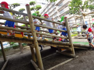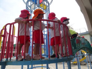 朝、園庭の掃除をしていると、うめ組の女の子が「園長先生、まだ、春なの」と質問してきました。「帽子は角帽から麦藁帽子に変わっているし、もも組の鞄棚の後ろには、カタツムリの製作品がおいてあるし、春から夏に変わっているのかもね」と話し、更に「暦の上では、こどもの日(5月5日)が夏の始まり(立夏)と書いているよ」と続けました。しかし、何かしっくりこない様子。自分で「夏になった」と実感し納得する出来事を体験することが大切だと思うことでした。