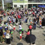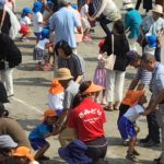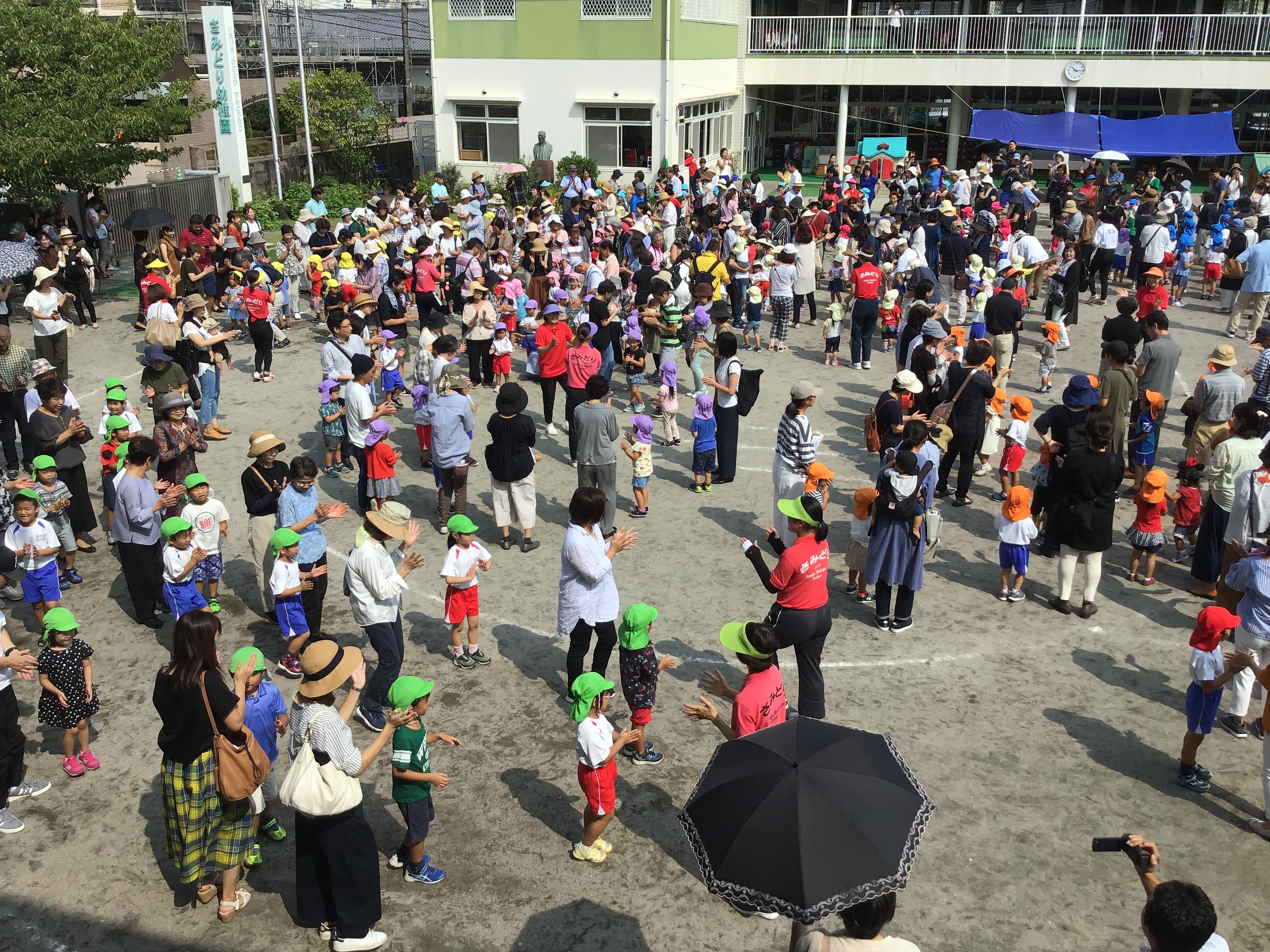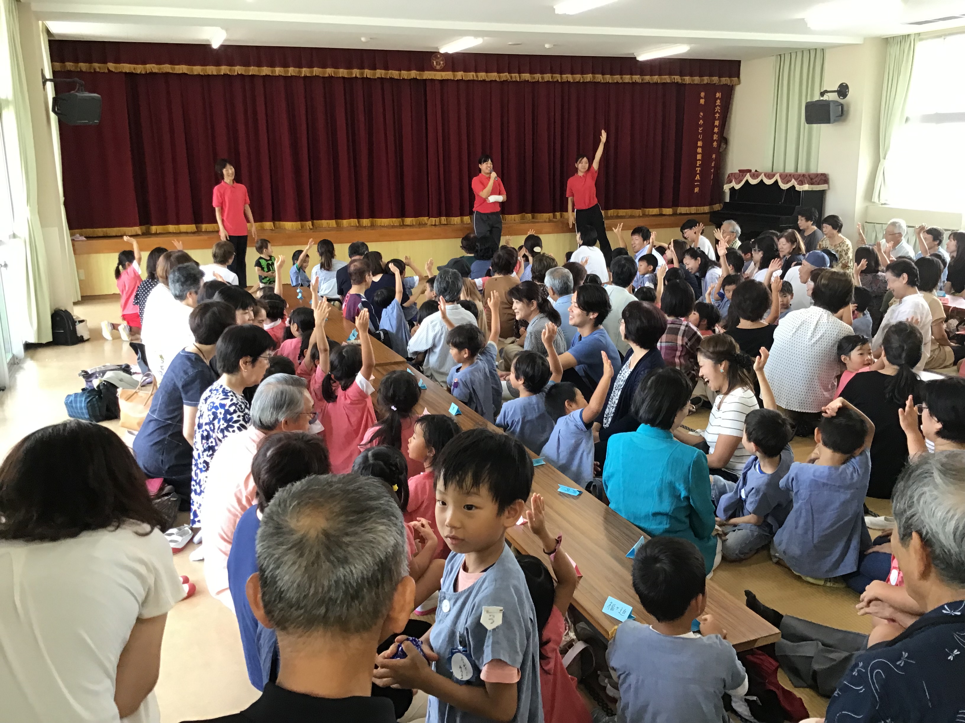 はじめに、合同リズム運動を見ていただき、その後、おじいちゃん、おばあちゃん方と楽しく遊戯を踊りました。