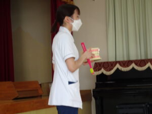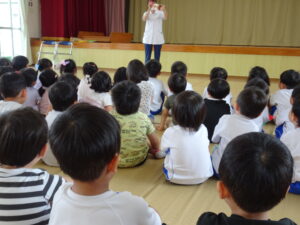 6月10日(火)歯科検診と歯磨き指導がありました。初めてのちゅうりっぷ組さんたちは神妙な態度で検診を受けていました。ご家庭でも、正しい歯磨きの仕方を子どもたちからお聞きください。