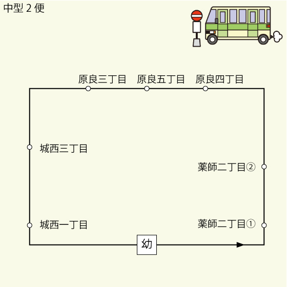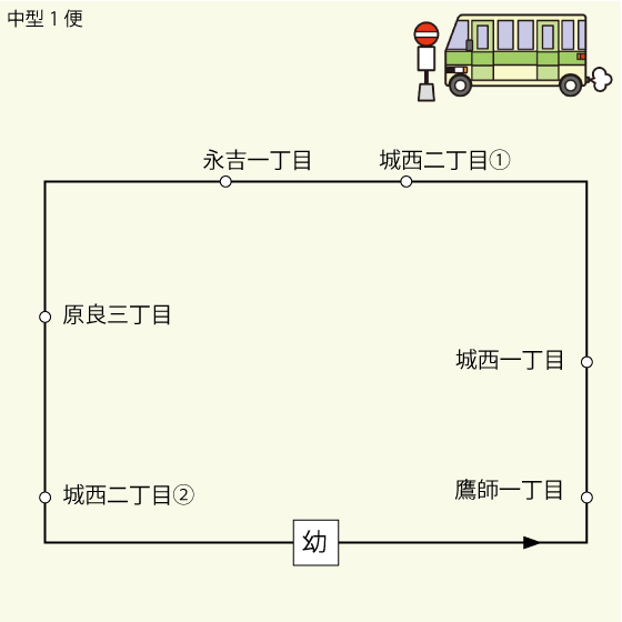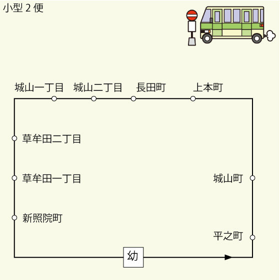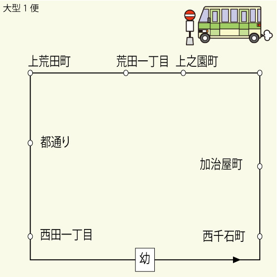 さみどり幼稚園では、園児の送り迎えに園バスを運行しています。令和7年度のコースは次のとおりです。